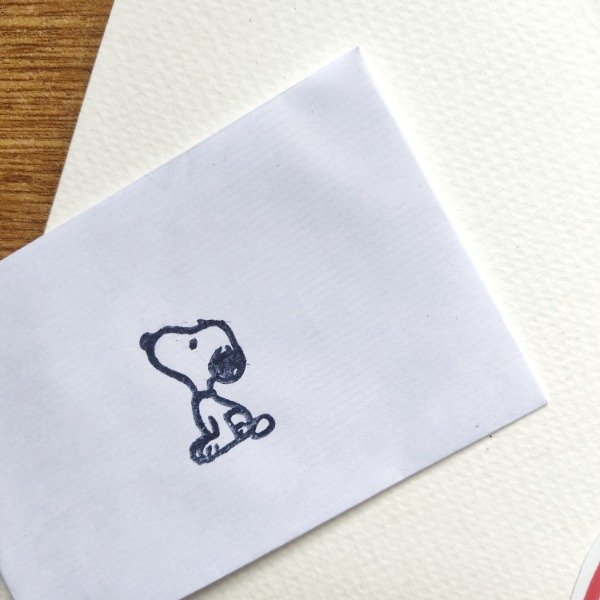 Pequeño sobre con un Snoopy estampado, contiene 7 sticker sorpresa, 6 en papel autoadhesivo común y uno especial (vinilo o glitter).